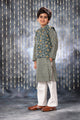 Discover our vibrant and comfortable kids' Jaipuri cotton kurta and pant set with a stylish waist jacket. Crafted for both elegance and comfort, these outfits feature intricate Jaipuri designs, making them perfect for special occasions. Minimal Gota work on kurta.