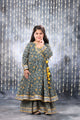A festive perfect suit for your little girl. Angrakha Anarkali kurta with full sleeves and heavy gota work neck panel paired with full circle palazzo. Heavy Gota work on matching dupatta and palazzo makes it a perfect choice of ethnic wear this festive season.