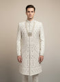 A masterpiece of craftsmanship, this Men’s Ivory Sherwani is designed for the most discerning groom, offering unparalleled regal splendor.